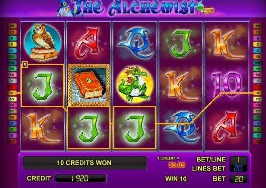 В видео слоте The Alchemist активируются до 20 игровых полос. От количества игровых линий зависит количество способов формирования выплат. Поэтому видео слот «Алхимик» считается гораздо прибыльнее таких автоматов Lucky Bugs, Columbus, Ultra Hot, Missis Gold, Cristal Luck, Double Magic и др.